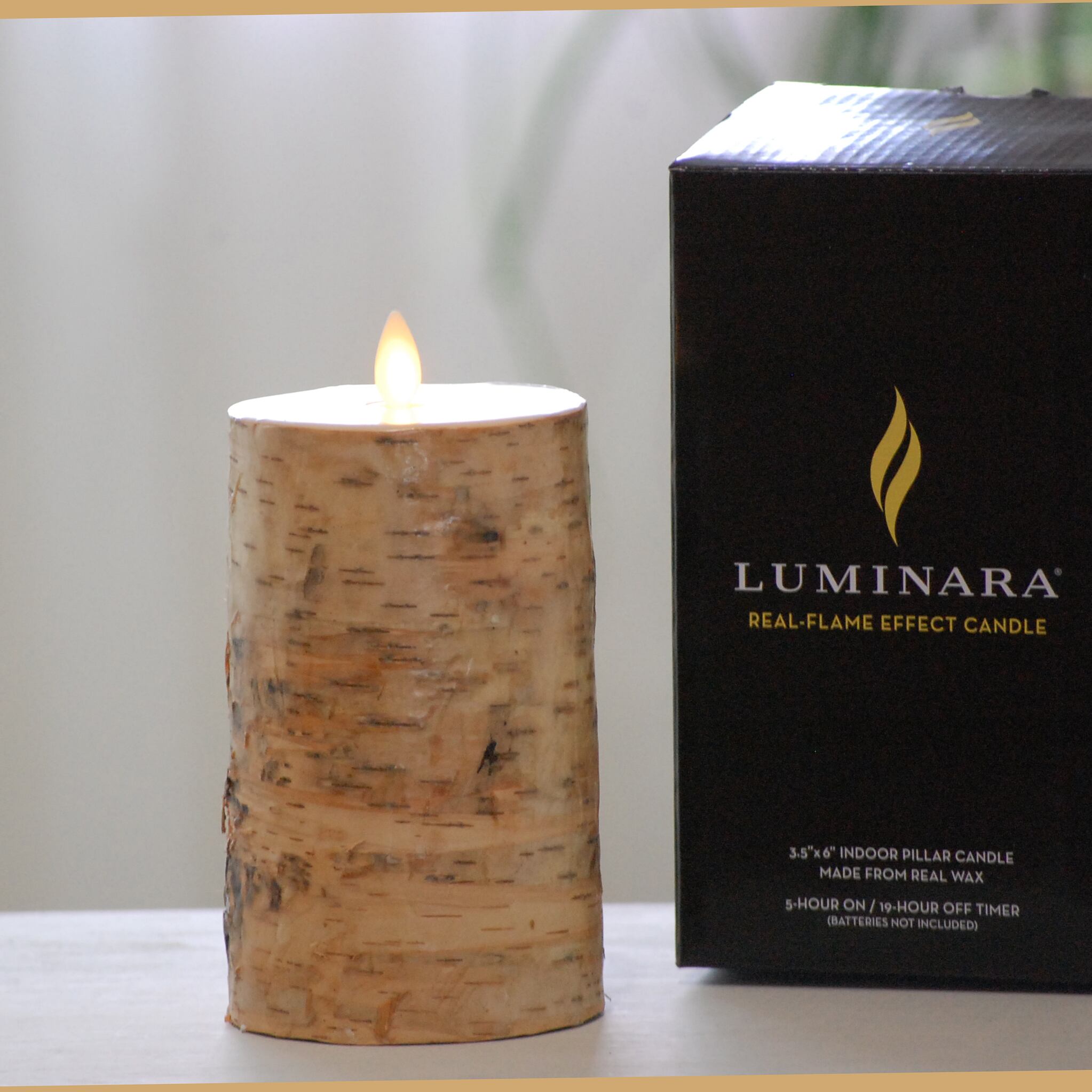 ひとつひとつ表情の違う、本物の白樺(バーチ)の樹皮を巻いたルミナラ(無香タイプ)