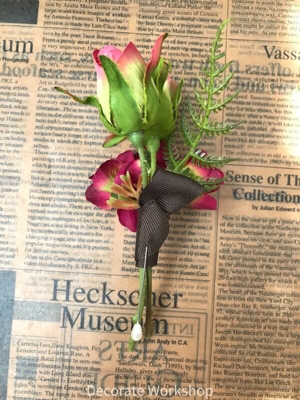 Groom(花婿)の襟元には、Bride(花嫁)の手に持つブーケと同じお花、あるいはカラーやテイストの同じものをお付け頂けると、とても素敵です。
