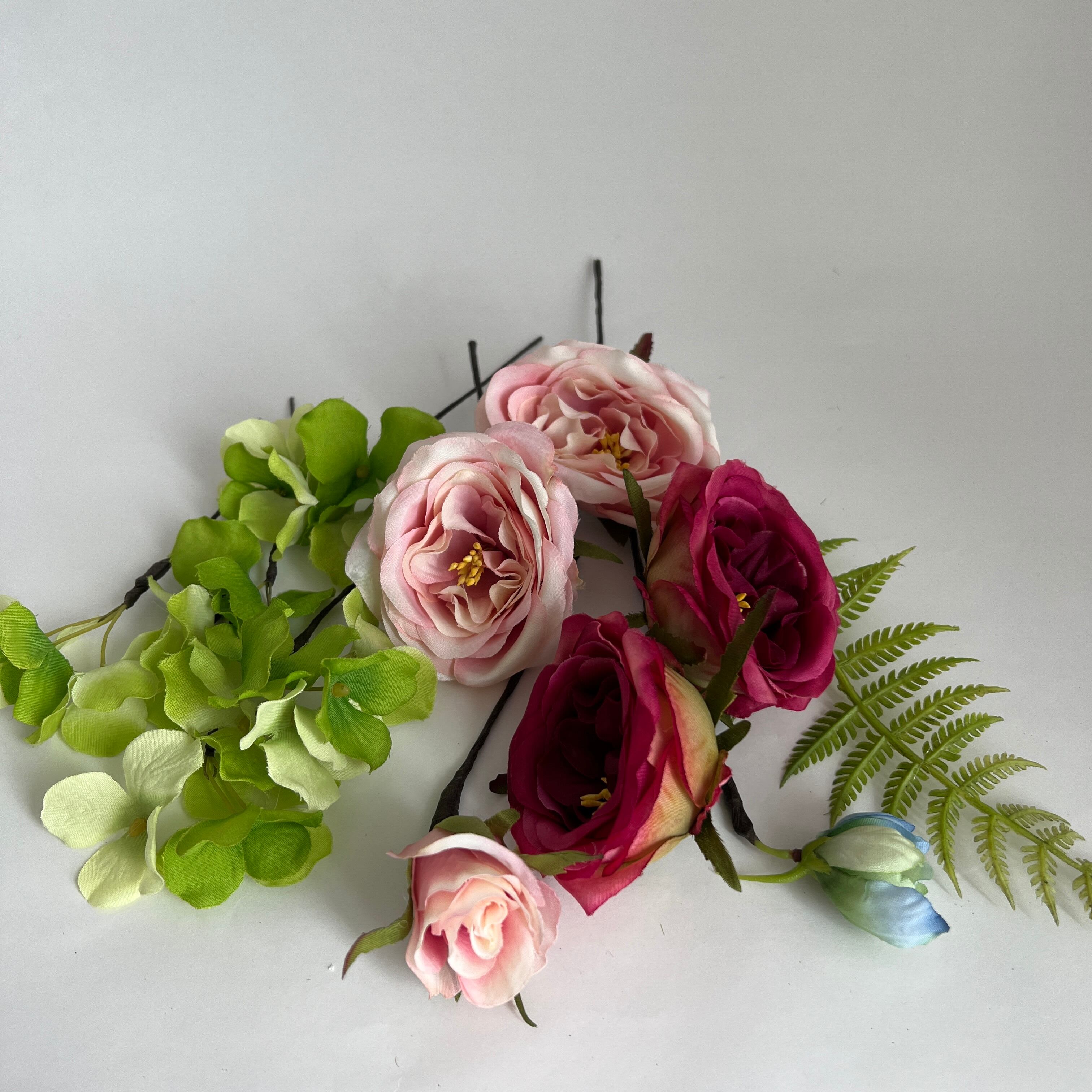 オールドローズ 2色 計5本 アジサイ6本 10~12cm/L程度