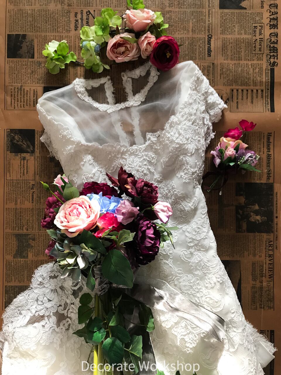 とても上質なのアーティフィシャルフラワーの花と葉物を厳選して、一厘ずつワイヤリングして、フラワーテープで仕上げてます。