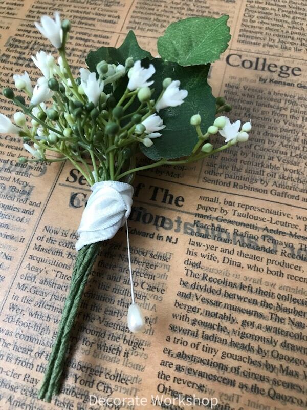 プリマジプソ(カスミソウ)を使い、高貴で上品なブートニア。