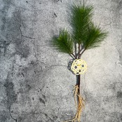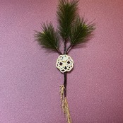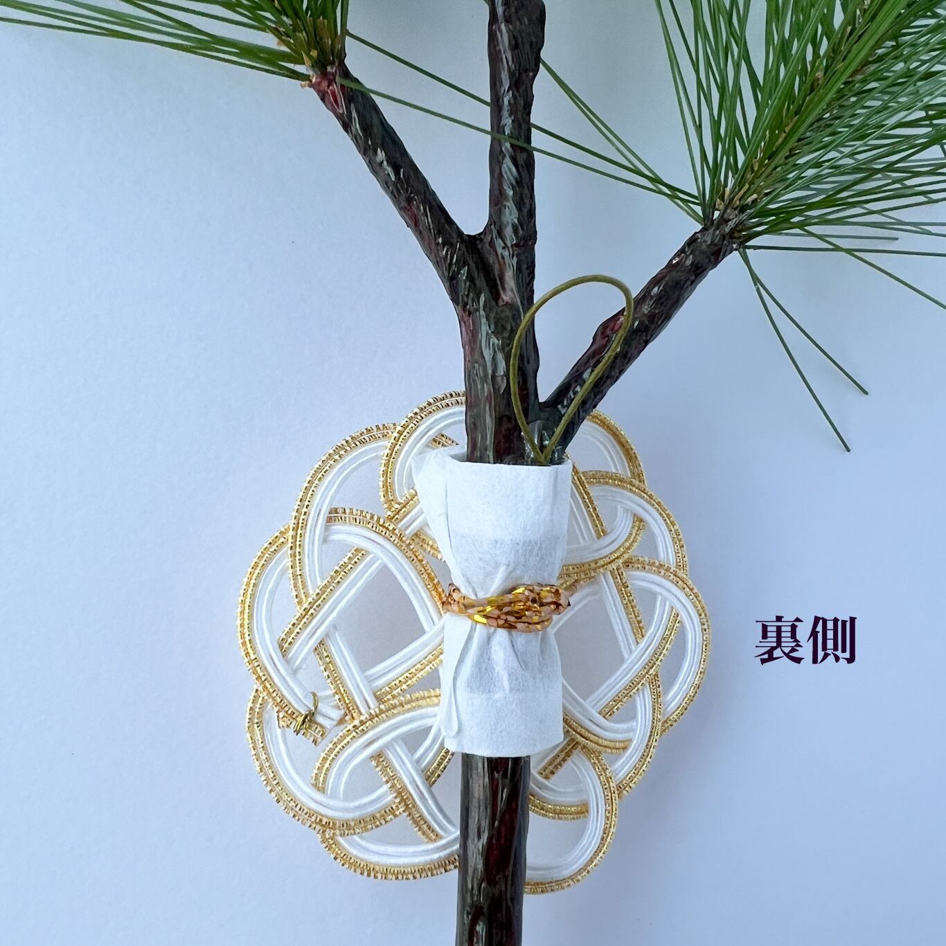 枝の中程に和紙を巻き、梅結びの白金の水引で彩ります。
